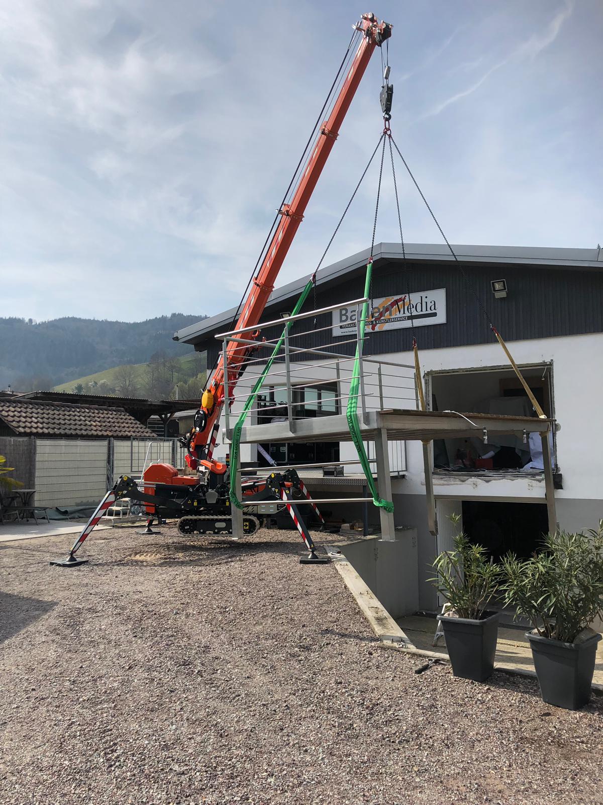 Mit unserem Minikran kommen wir auch an schwer zugängliche Höhen heran.